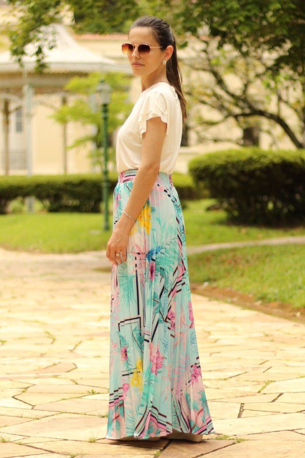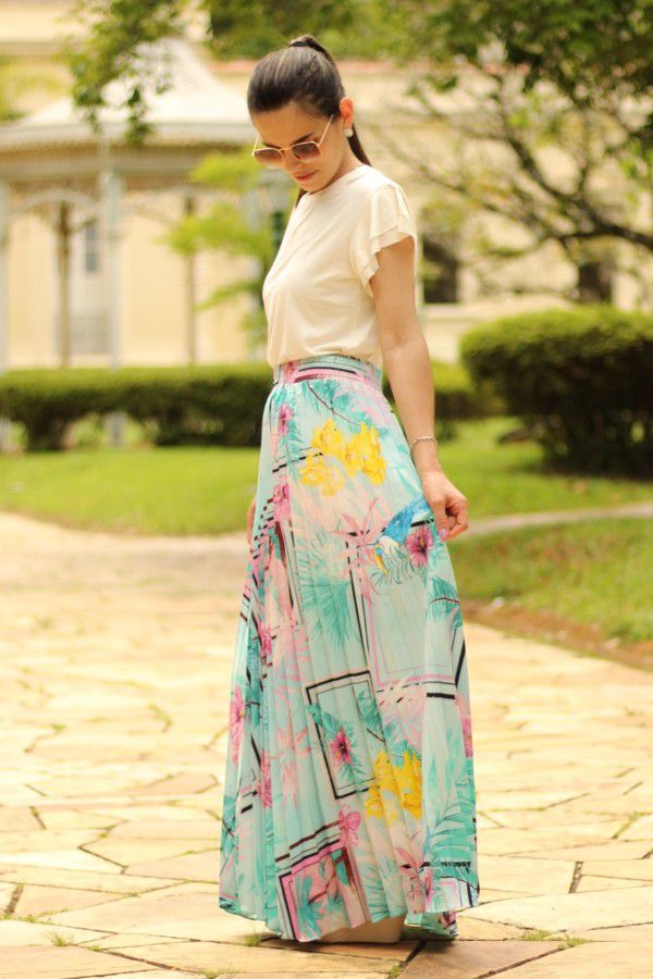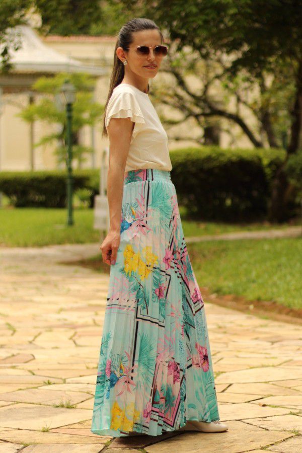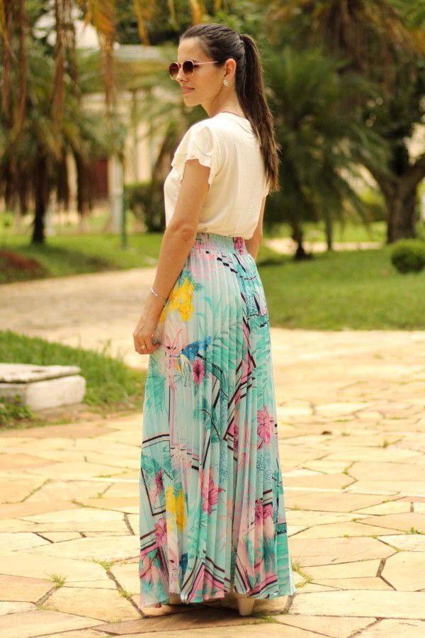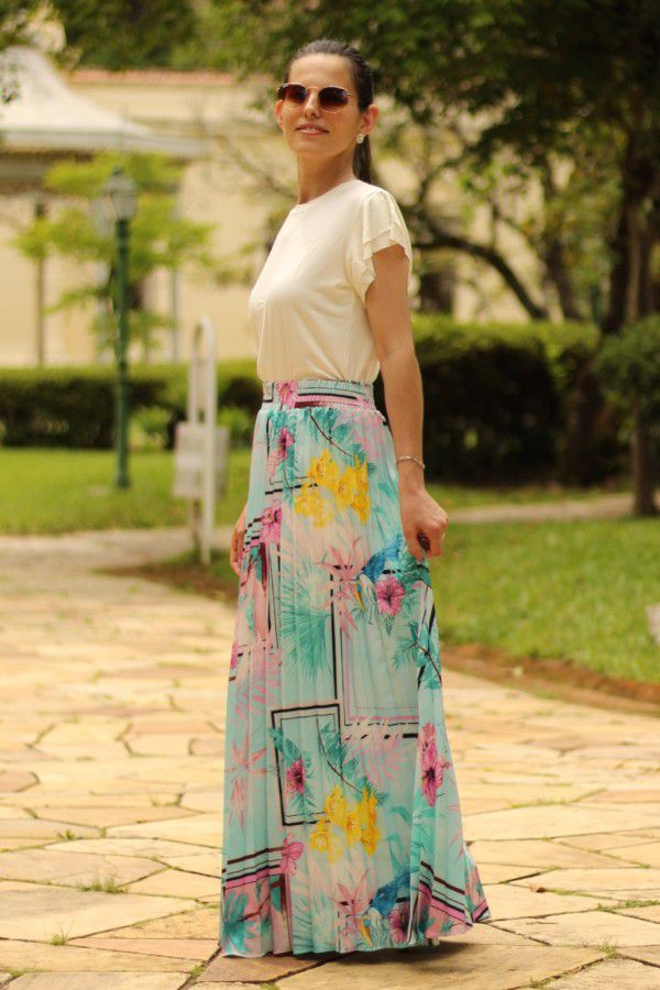 Esta saia combina bem com várias blusas e pode ser usada em diversas ocasiões, levando os outros a conhecerem a beleza e a modéstia.
