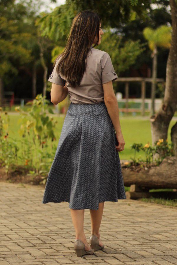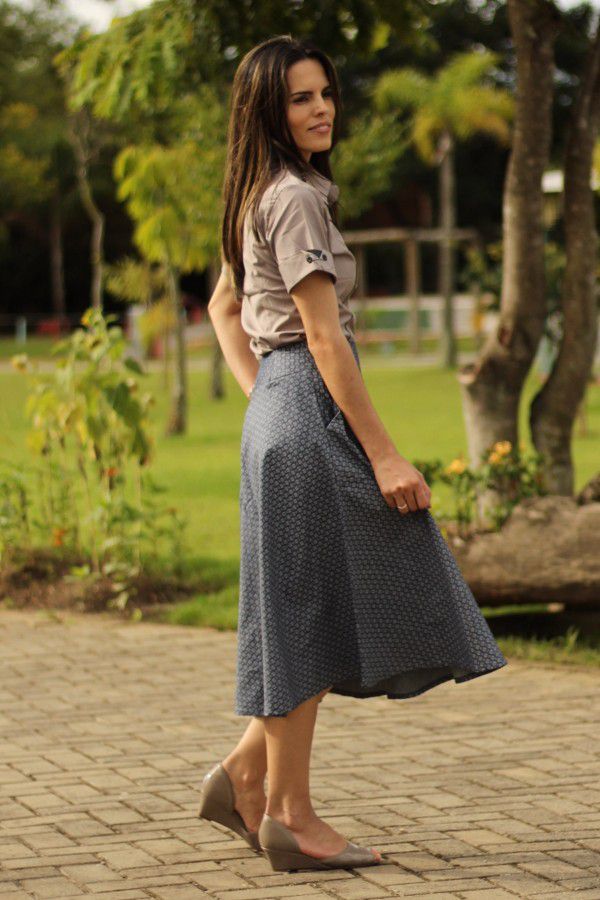 Esta saia combina bem com qualquer blusa e pode ser usada em diversas ocasiões, levando os outros a conhecerem a beleza e a modéstia.