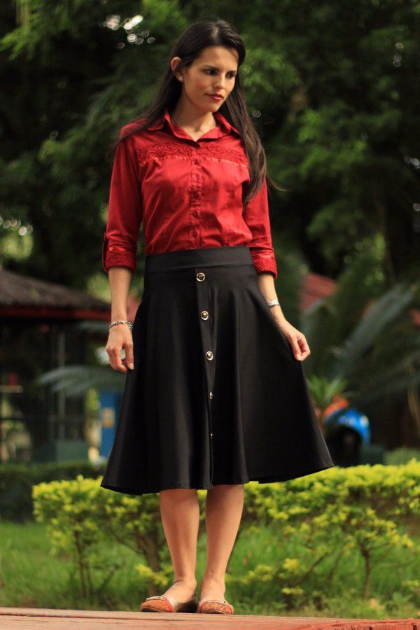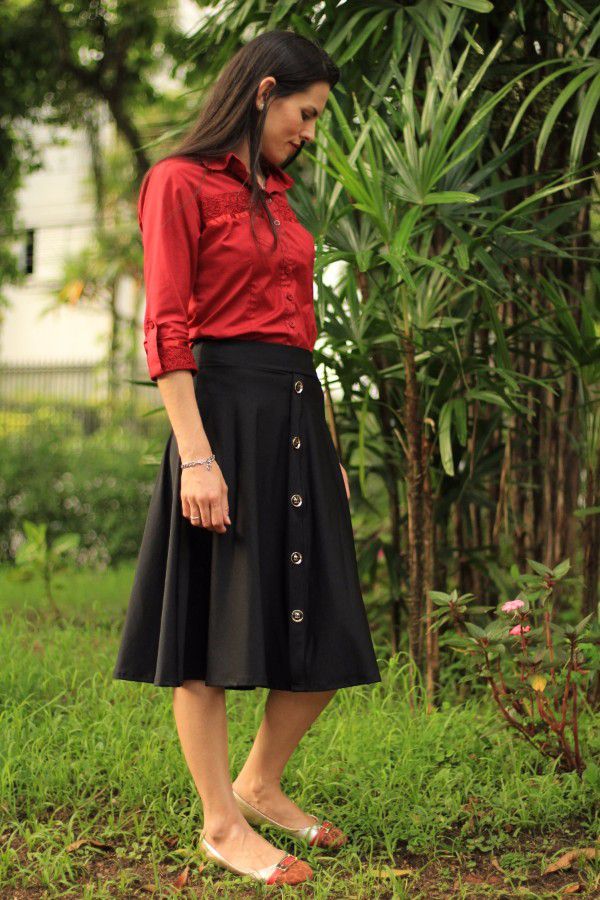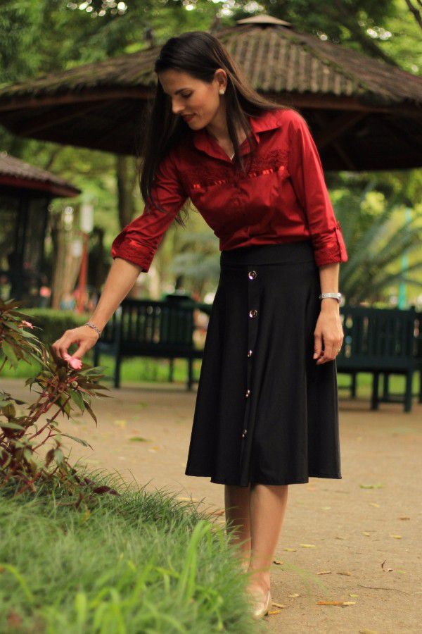 Esta saia combina bem com qualquer blusa e pode ser usada em diversas ocasiões, levando os outros a conhecerem a beleza e a modéstia.