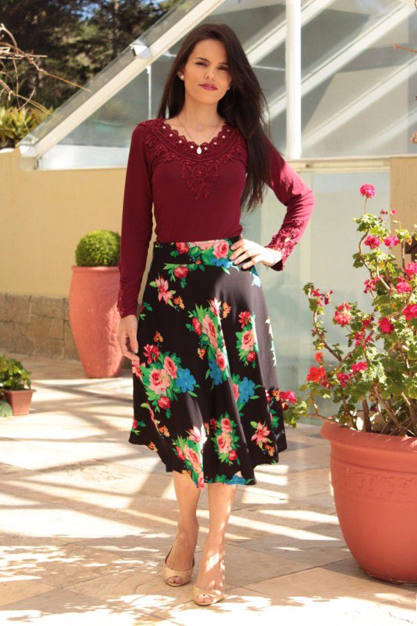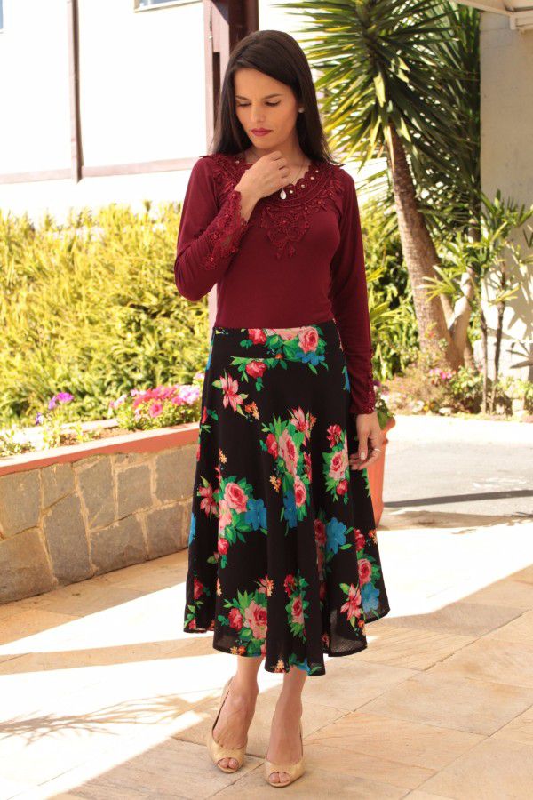 Esta saia combina bem com bastante opções de blusas e pode ser usada em diversas ocasiões, levando os outros a conhecerem a beleza e a modéstia.