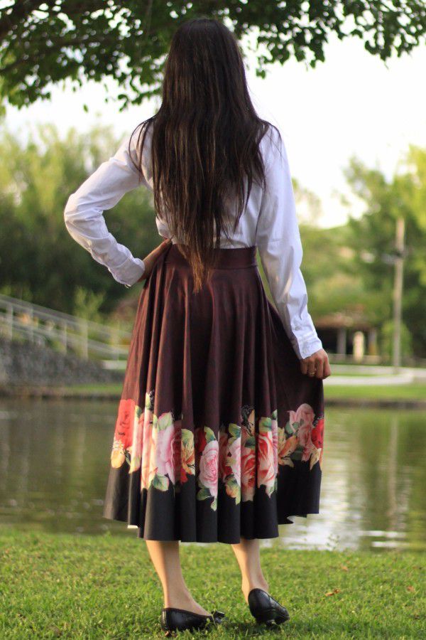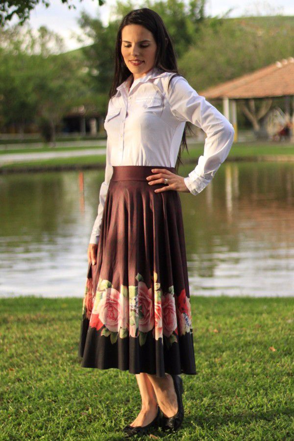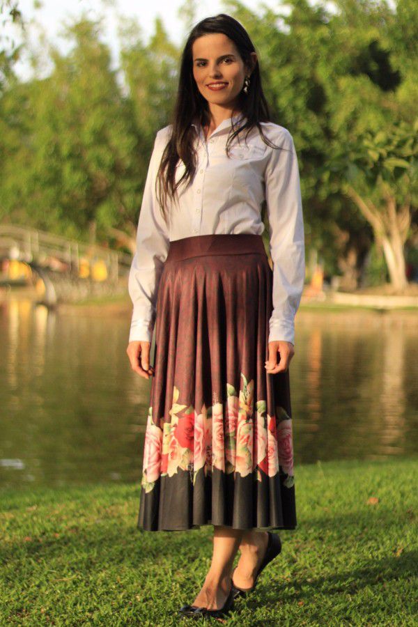 Esta saia combina bem com qualquer blusa e pode ser usada em diversas ocasiões, levando os outros a conhecerem a beleza e a modéstia. Produto que não é necessário o uso de anágua (saia de baixo) para ser modesto.