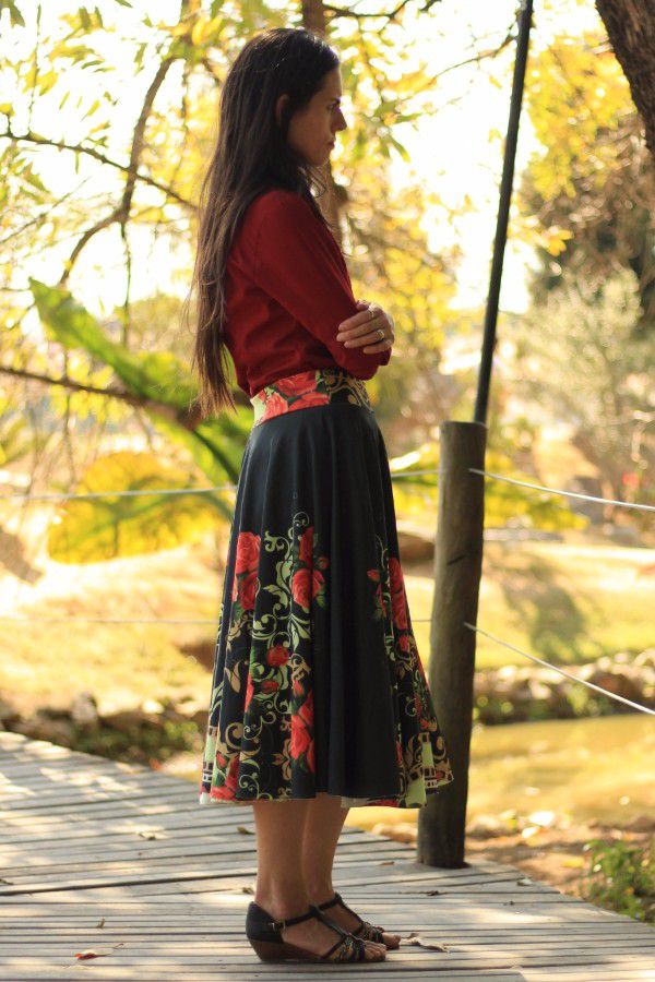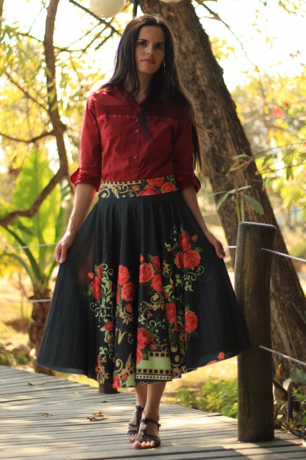 Esta saia combina bem com qualquer blusa e pode ser usada em diversas ocasiões, levando os outros a conhecerem a beleza e a modéstia.