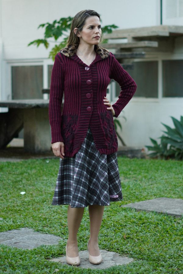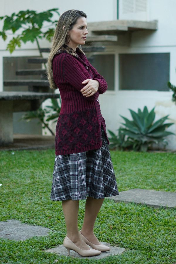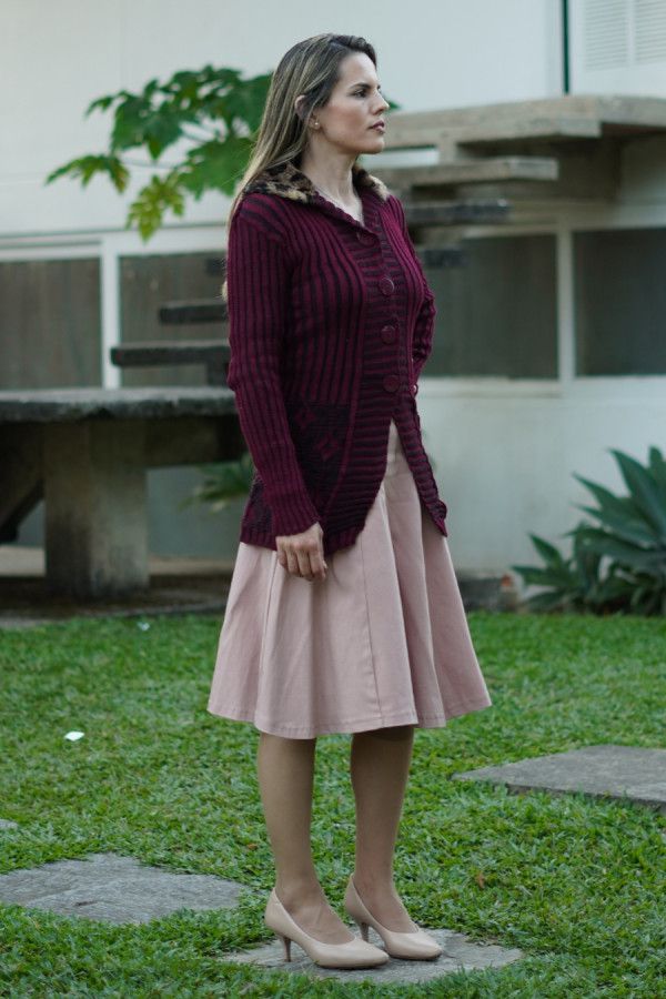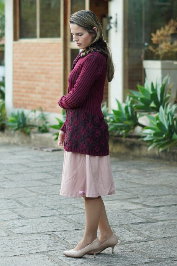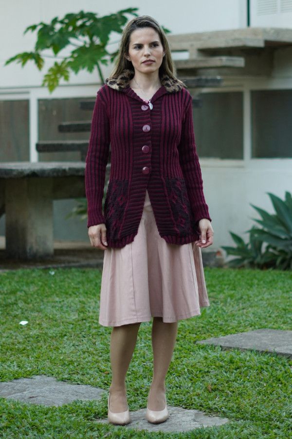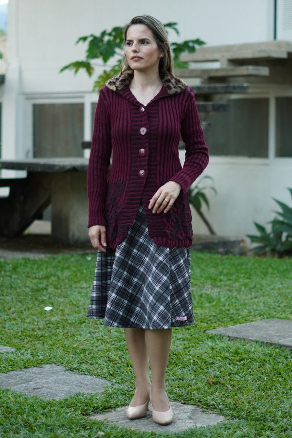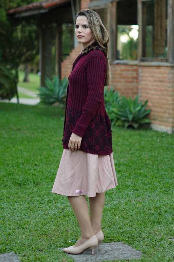 O casaco é confeccionado em tricot trama sanfonada, preto e vinho, com linda gola. Possui mangas longas, abertura frontal com botões e modelagem alongada, lindo detalhe em baixo. Combine com um vestido e bota para ficar linda e elegante no inverno.